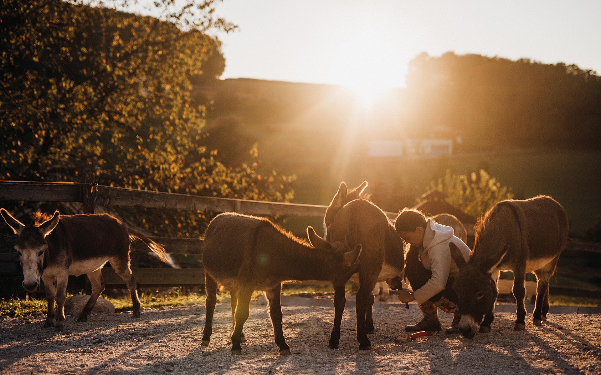 Vrata našega posestva so odprta za manjše skupine obiskovalcev, ki si želijo stika z živalmi, s katerimi se, sploh prebivalci mest, ne srečajo prav pogosto in o katerih bi se radi tudi kaj naučili. Ker pa si želimo našim gostom omogočiti pristno doživetje druženja s prijaznimi radovednimi živalmi v razmerah, ki so prijetne za vse, smo raje prijazno butični kot množični.